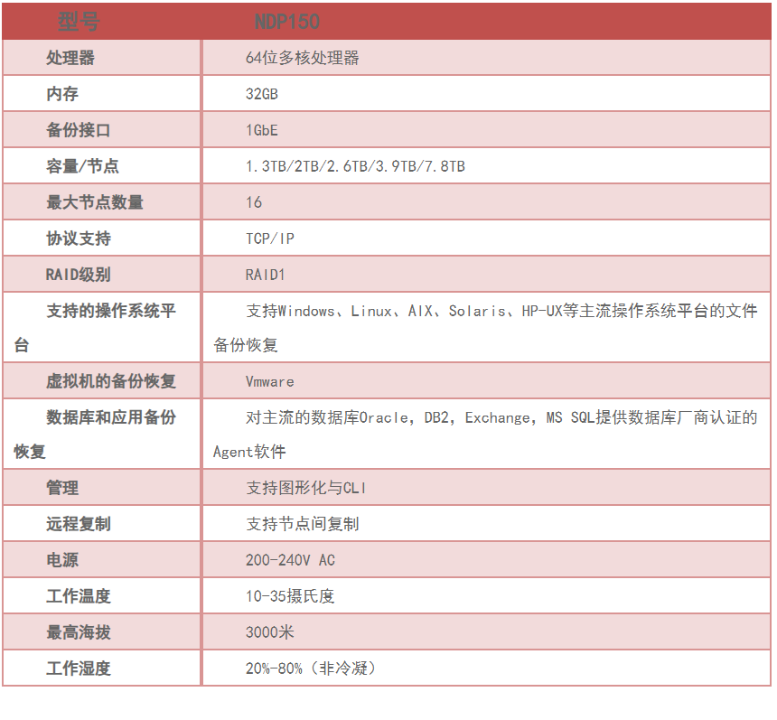 酷游九州 NCS NDP100(简称NDP100)系列是集备份服务器、备份介质、备份软件于一体的产品,集成的全局客户端重复数据消除技术,使 VMware 环境、远程办公室、企业应用程序、LAN/NAS服务器以及台式机/笔记本电脑的日常完整备份变得更加方便快捷,为关键业务提供全面的数据保护。